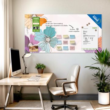 Material: 4mm Sicherheitsglas mit Metallrückwand Eigenschaften: beschreibbar, magnetisch, kratzfest Maße: 120x60x0,6cm, 10,80kg schwer Motiv Nummer 10281 Bunter Mohn Zubehör: inklusive 4 Neodym-Magnete