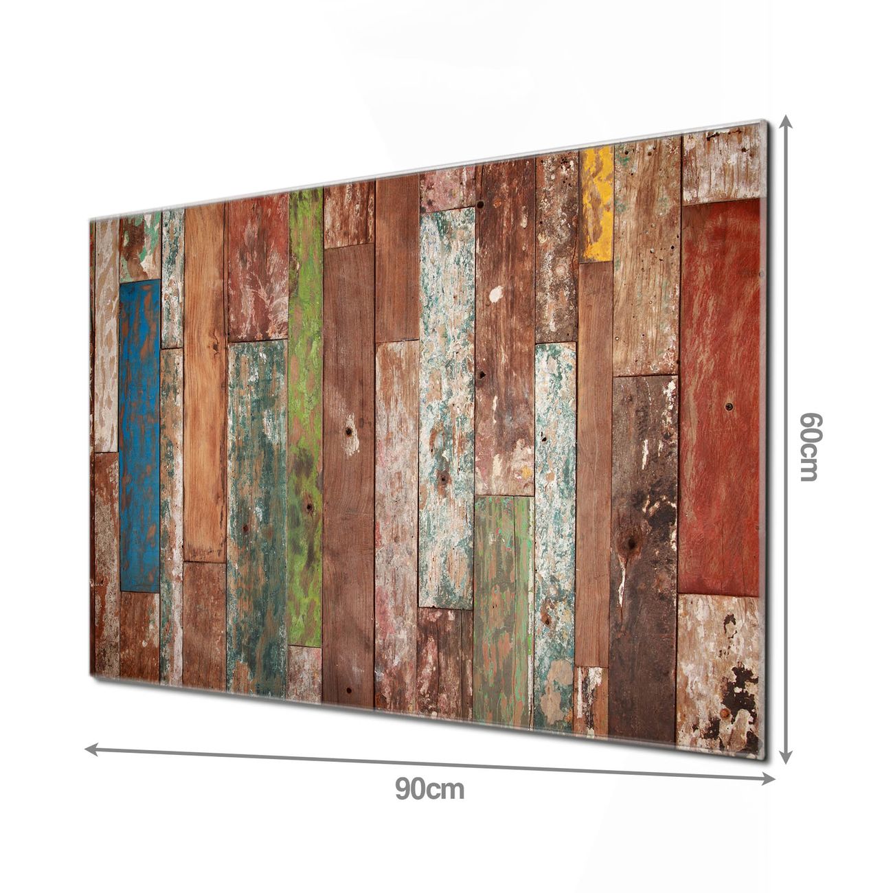 Material  4mm Sicherheitsglas mit Metallrückwand Eigenschaften  beschreibbar, magnetisch, kratzfest Maße  90x60x0,6cm, 8,10kg schwer Motiv  Nummer 12140 Buntes Holz Zubehör  inklusive 4 Neodym-Magnete
