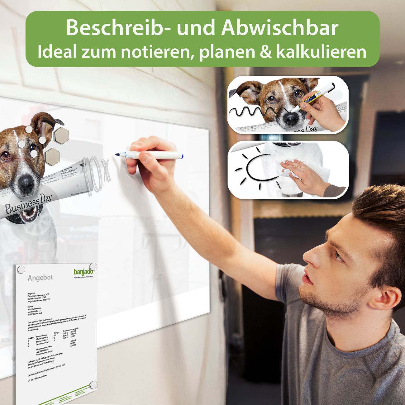 Bitte beachten Sie, dass ausschliessliche spezielle Magnete an der Glastafel haften. Wir empfehlen banjado Neodym Magnete, diese sind durch uns auf Wirksamkeit geprüft.
