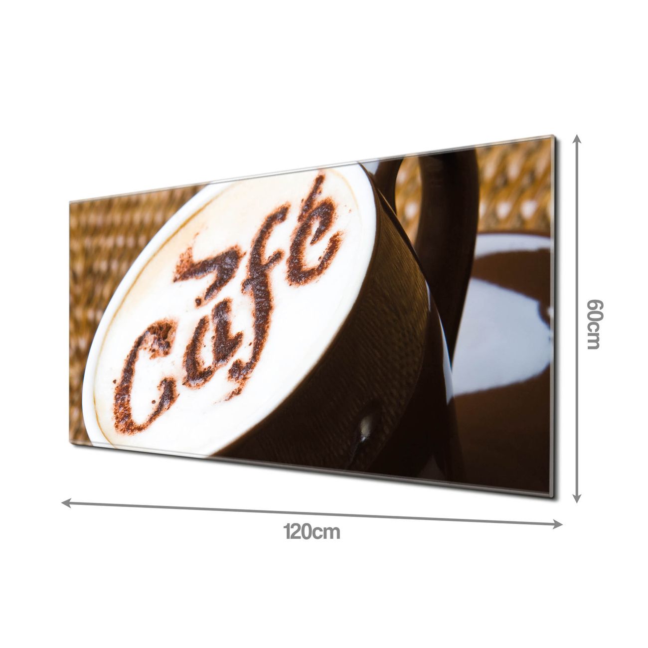 Material: 4mm Sicherheitsglas mit Metallrückwand Eigenschaften: beschreibbar, magnetisch, kratzfest Maße: 120x60x0,6cm, 10,80kg schwer Motiv Nummer 10093 Cafe Zubehör: inklusive 4 Neodym-Magnete