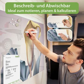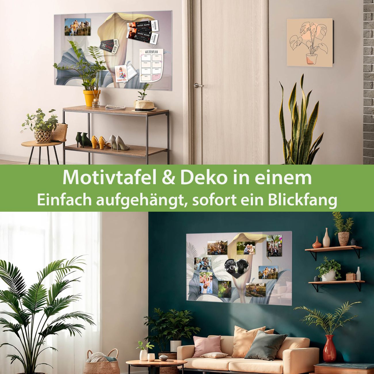 Die banjado Glas Magnettafel mit dem Motiv Motiv Calla verbindet Funktionalität mit Stil. Sie ersetzt das Zettelchaos durch klare Strukturen und bringt dabei eine warme, natürliche Atmosphäre in Ihr Zuhause. Ob im Büro, in der Küche oder im Eingangsbereich - dieses Design-Board zieht Blicke an und sorgt für Ordnung mit Charakter.