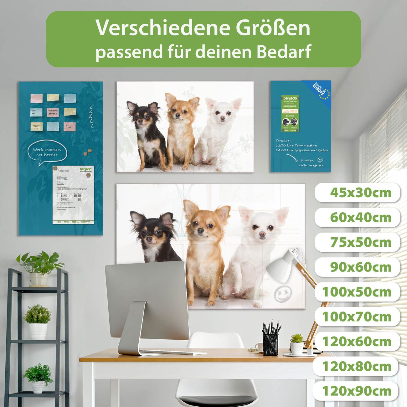 Die banjado Glas Magnettafel mit dem Motiv Motiv Chihuahua verbindet Funktionalität mit Stil. Sie ersetzt das Zettelchaos durch klare Strukturen und bringt dabei eine warme, natürliche Atmosphäre in Ihr Zuhause. Ob im Büro, in der Küche oder im Eingangsbereich - dieses Design-Board zieht Blicke an und sorgt für Ordnung mit Charakter.