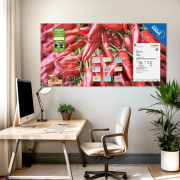 Die banjado Glas Magnettafel mit dem Motiv Motiv Chilli verbindet Funktionalität mit Stil. Sie ersetzt das Zettelchaos durch klare Strukturen und bringt dabei eine warme, natürliche Atmosphäre in Ihr Zuhause. Ob im Büro, in der Küche oder im Eingangsbereich - dieses Design-Board zieht Blicke an und sorgt für Ordnung mit Charakter.