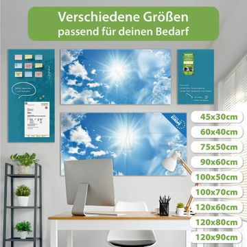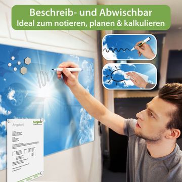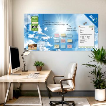 Die banjado Glas Magnettafel mit dem Motiv Motiv Clouds verbindet Funktionalität mit Stil. Sie ersetzt das Zettelchaos durch klare Strukturen und bringt dabei eine warme, natürliche Atmosphäre in Ihr Zuhause. Ob im Büro, in der Küche oder im Eingangsbereich - dieses Design-Board zieht Blicke an und sorgt für Ordnung mit Charakter.