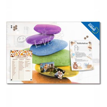 Material: 4mm Sicherheitsglas mit Metallrückwand Eigenschaften: beschreibbar, magnetisch, kratzfest Maße: 75x50x0,6cm, 5,63kg schwer Motiv Nummer 10158 Coloured Stone Zubehör: inklusive 4 Neodym-Magnete