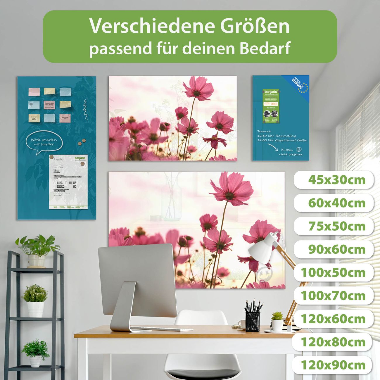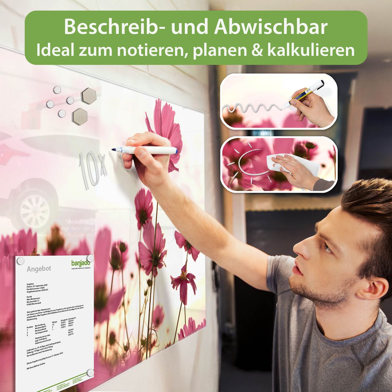 Jede Glas Magnettafel wird in unserer Werkstatt von Hand gefertigt und sorgfältig geprüft. So erhalten Sie ein echtes Qualitätsprodukt, das Funktion und Ästhetik perfekt vereint.?? Warum banjado?