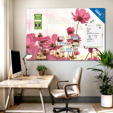 Die banjado Glas Magnettafel mit dem Motiv Motiv Cosmea verbindet Funktionalität mit Stil. Sie ersetzt das Zettelchaos durch klare Strukturen und bringt dabei eine warme, natürliche Atmosphäre in Ihr Zuhause. Ob im Büro, in der Küche oder im Eingangsbereich - dieses Design-Board zieht Blicke an und sorgt für Ordnung mit Charakter.
