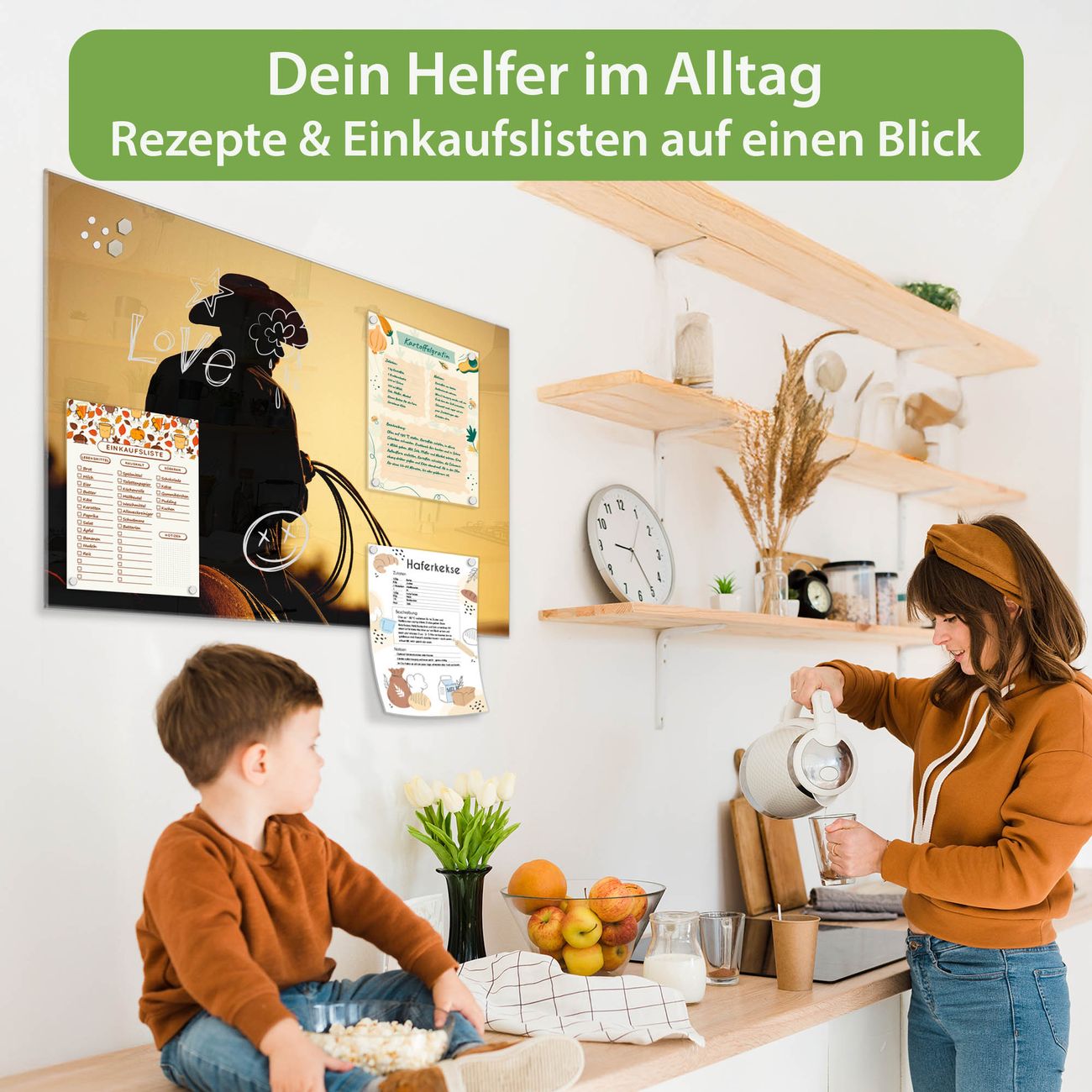 Ein Stück Design, das Ihren Alltag organisiert. Schreiben, heften, inspirieren - alles an einem Ort. Qualität, die man spürt. Montage leicht gemacht. Handwerk mit Herz - veredelt in Sachsen. Einzigartiges Design mit Motiv Motiv Cowboy Beschreibbare Glasoberfläche, leicht zu reinigen Starke Magnetkraft durch Stahlrückwand Inklusive 4 Neodym-Magneten Flexible Montageoptionen Handveredelt in Sachsen - Qualität, die bleibt