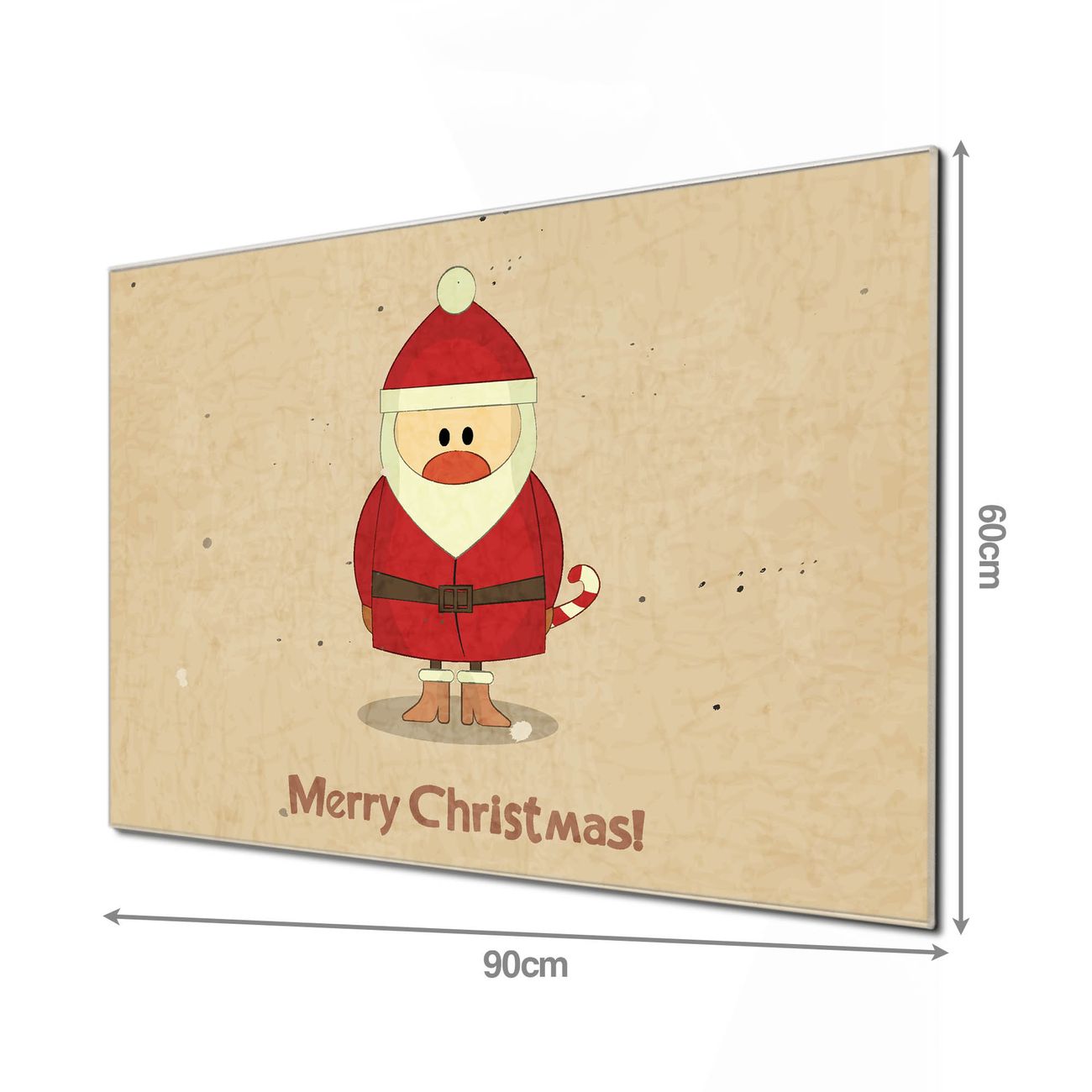 Material: 4mm Sicherheitsglas mit Metallrückwand Eigenschaften: beschreibbar, magnetisch, kratzfest Maße: 90x60x0,6cm, 8,10kg schwer Motiv Nummer 10836 Cute Claus Zubehör: inklusive 4 Neodym-Magnete