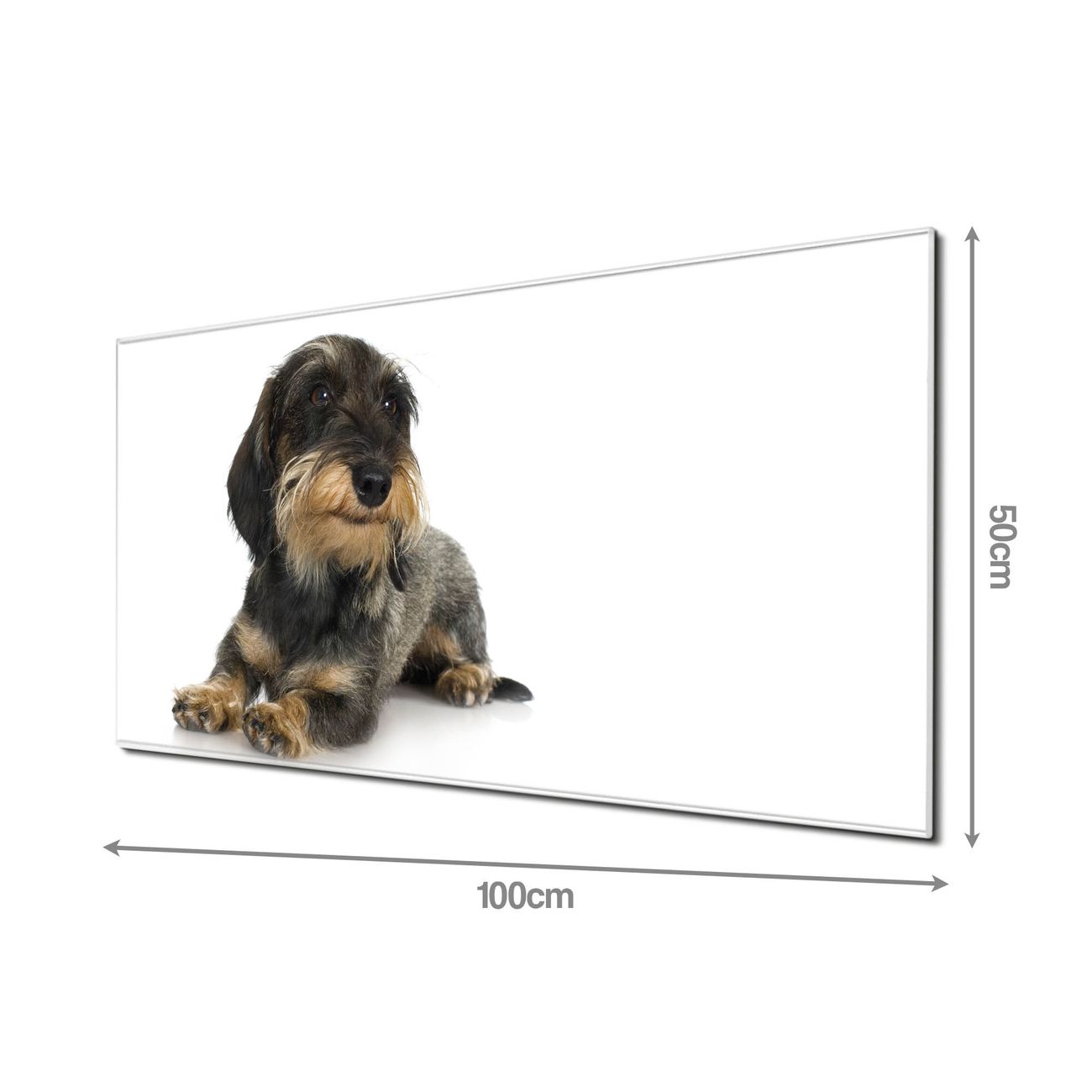 Material: 4mm Sicherheitsglas mit Metallrückwand Eigenschaften: beschreibbar, magnetisch, kratzfest Maße: 100x50x0,6cm, 7,50kg schwer Motiv Nummer 10150 Dackel Zubehör: inklusive 4 Neodym-Magnete