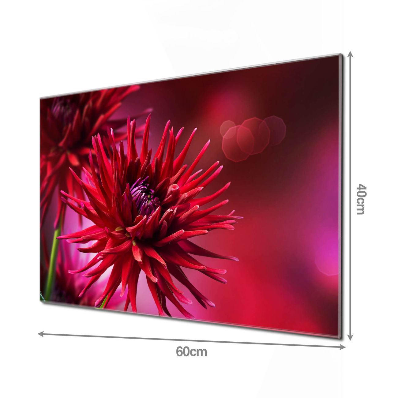 Material  4mm Sicherheitsglas mit Metallrückwand Eigenschaften  beschreibbar, magnetisch, kratzfest Maße  60x40x0,6cm, 3,6kg schwer Motiv  Nummer 10423 Rote Dahlien Zubehör  inklusive 4 Neodym-Magnete