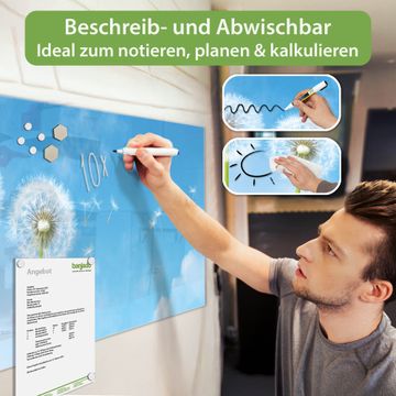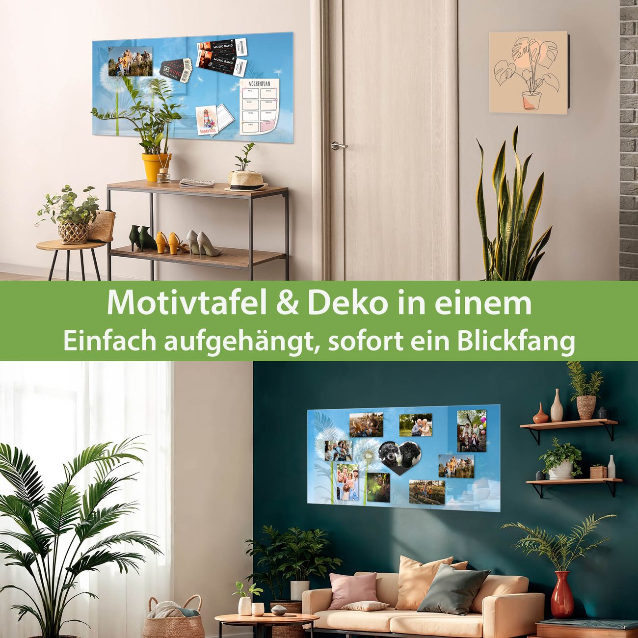 Die banjado Glas Magnettafel mit dem Motiv Motiv Dandelion verbindet Funktionalität mit Stil. Sie ersetzt das Zettelchaos durch klare Strukturen und bringt dabei eine warme, natürliche Atmosphäre in Ihr Zuhause. Ob im Büro, in der Küche oder im Eingangsbereich - dieses Design-Board zieht Blicke an und sorgt für Ordnung mit Charakter.