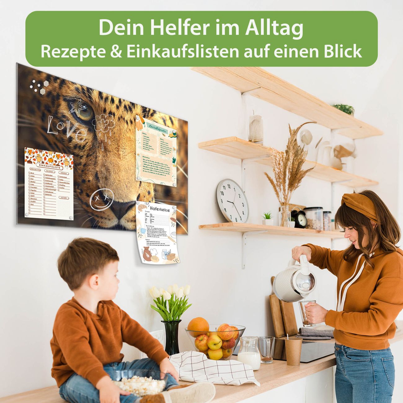 Auf der glatten Glasoberfläche lassen sich Termine, Rezepte oder Notizen ganz einfach mit Kreidestiften festhalten und rückstandslos entfernen. Starke Neodym-Magnete halten Ihre wichtigsten Erinnerungen sicher an Ort und Stelle. So entsteht Ihre ganz persönliche Ideenwand - jeden Tag neu.