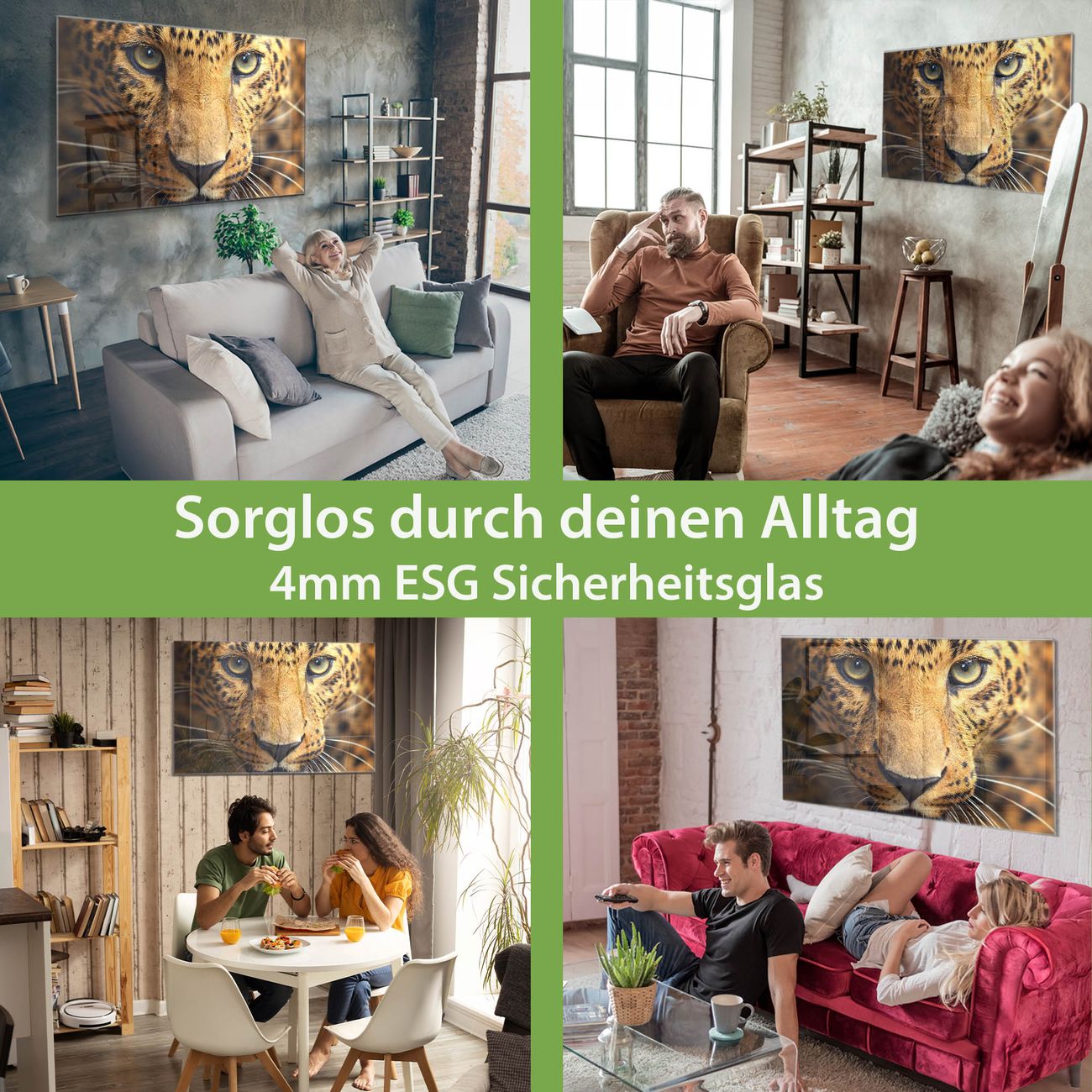 Material: 4mm Sicherheitsglas mit Metallrückwand Eigenschaften: beschreibbar, magnetisch, kratzfest Maße: 90x60x0,6cm, 8,10kg schwer Motiv Nummer 12366 Daphne Zubehör: inklusive 4 Neodym-Magnete