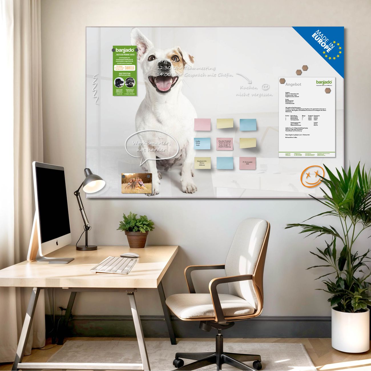 Jede Glas Magnettafel wird in unserer Werkstatt von Hand gefertigt und sorgfältig geprüft. So erhalten Sie ein echtes Qualitätsprodukt, das Funktion und Ästhetik perfekt vereint.?? Warum banjado?