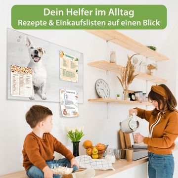 Auf der glatten Glasoberfläche lassen sich Termine, Rezepte oder Notizen ganz einfach mit Kreidestiften festhalten und rückstandslos entfernen. Starke Neodym-Magnete halten Ihre wichtigsten Erinnerungen sicher an Ort und Stelle. So entsteht Ihre ganz persönliche Ideenwand - jeden Tag neu.