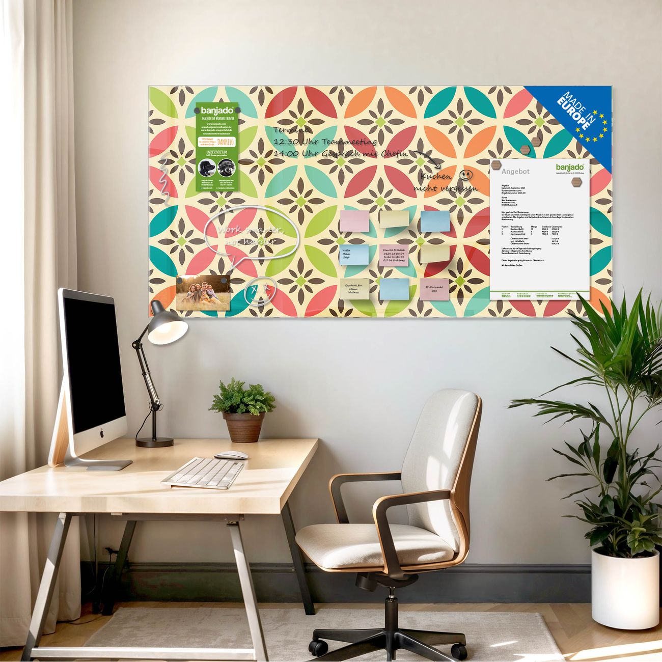 Die banjado Glas Magnettafel mit dem Motiv Motiv Diamant Muster verbindet Funktionalität mit Stil. Sie ersetzt das Zettelchaos durch klare Strukturen und bringt dabei eine warme, natürliche Atmosphäre in Ihr Zuhause. Ob im Büro, in der Küche oder im Eingangsbereich - dieses Design-Board zieht Blicke an und sorgt für Ordnung mit Charakter.