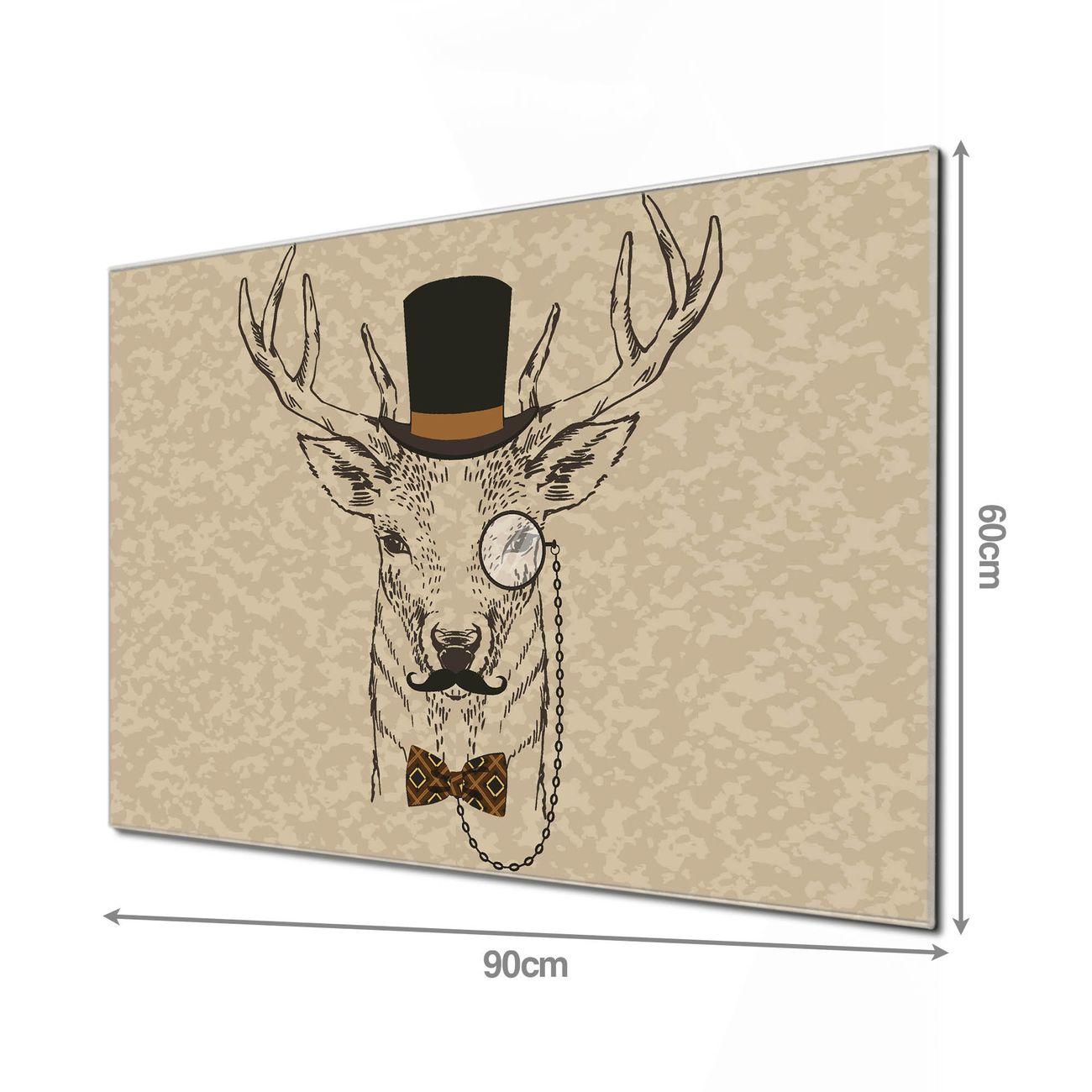 Material: 4mm Sicherheitsglas mit Metallrückwand Eigenschaften: beschreibbar, magnetisch, kratzfest Maße: 90x60x0,6cm, 8,10kg schwer Motiv Nummer 12098 Direktor Hirsch Zubehör: inklusive 4 Neodym-Magnete