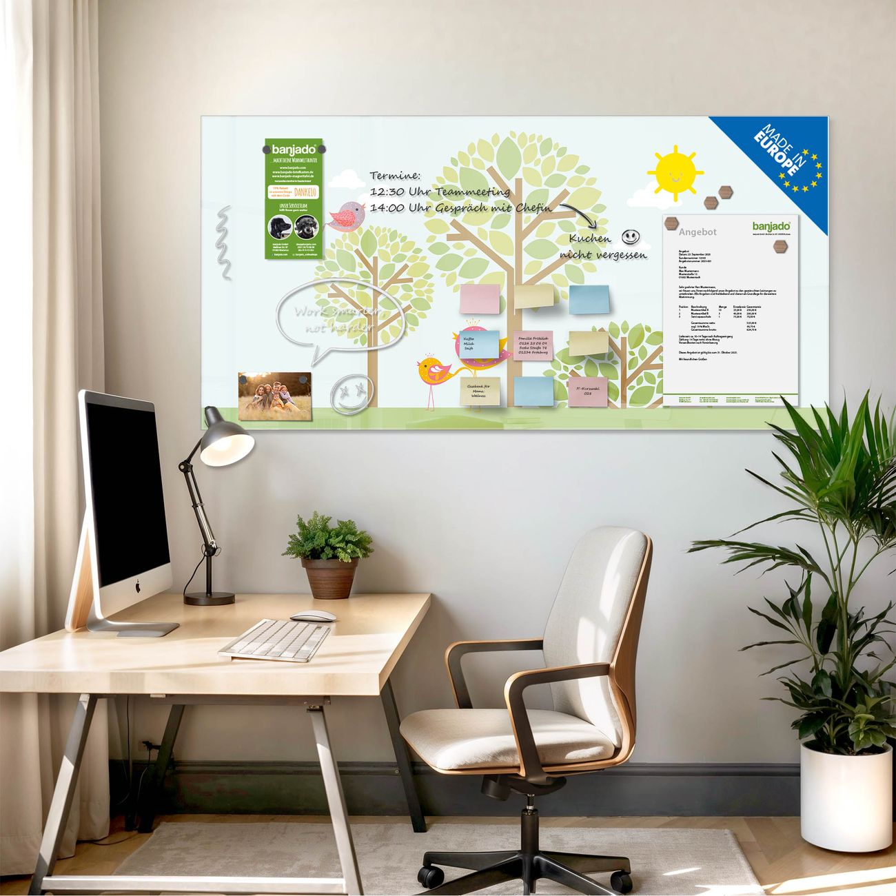 Die banjado Glas Magnettafel mit dem Motiv Motiv Drei Bäume verbindet Funktionalität mit Stil. Sie ersetzt das Zettelchaos durch klare Strukturen und bringt dabei eine warme, natürliche Atmosphäre in Ihr Zuhause. Ob im Büro, in der Küche oder im Eingangsbereich - dieses Design-Board zieht Blicke an und sorgt für Ordnung mit Charakter.