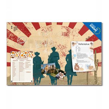 Die banjado Glas Magnettafel mit dem Motiv Motiv Drei Cowboys verbindet Funktionalität mit Stil. Sie ersetzt das Zettelchaos durch klare Strukturen und bringt dabei eine warme, natürliche Atmosphäre in Ihr Zuhause. Ob im Büro, in der Küche oder im Eingangsbereich - dieses Design-Board zieht Blicke an und sorgt für Ordnung mit Charakter.