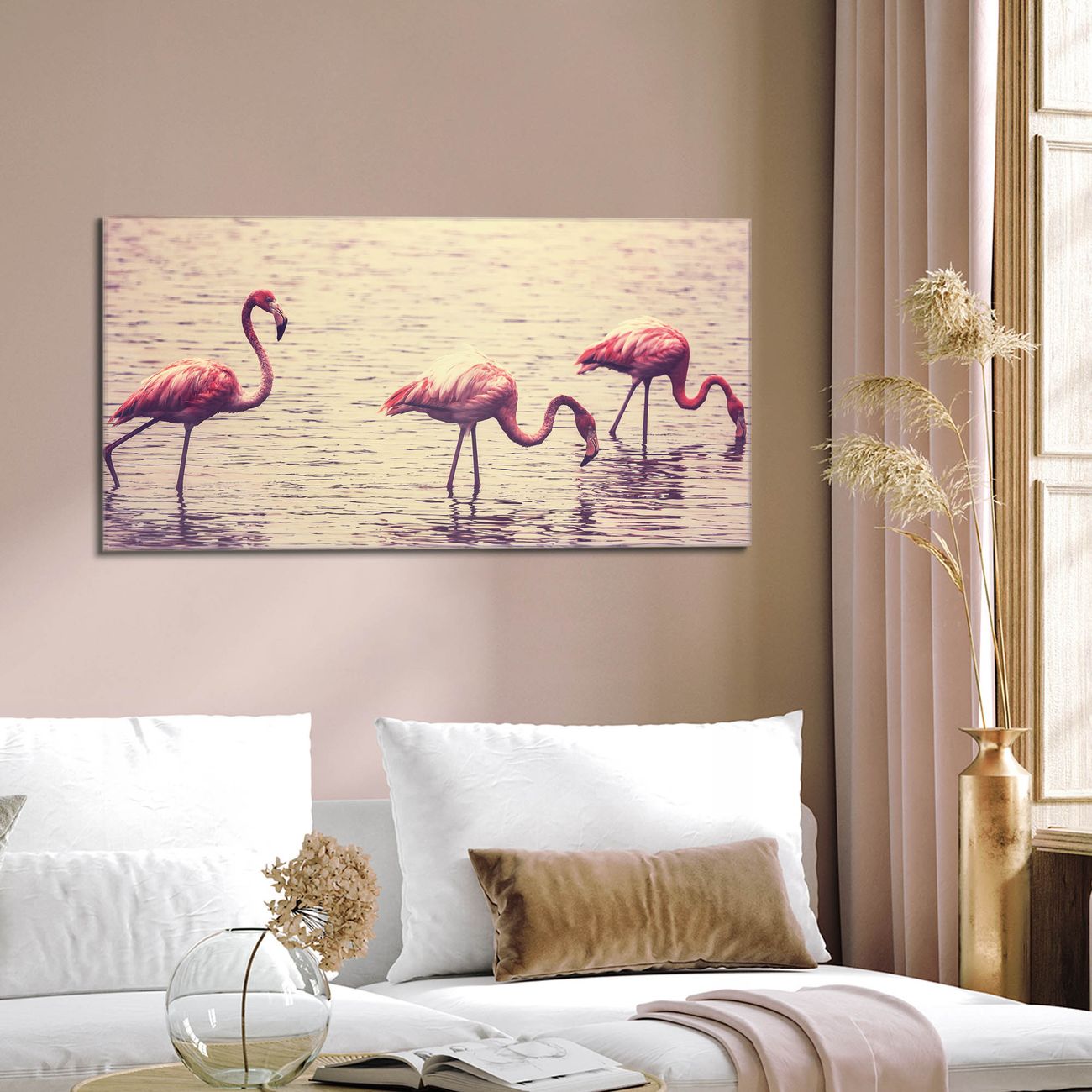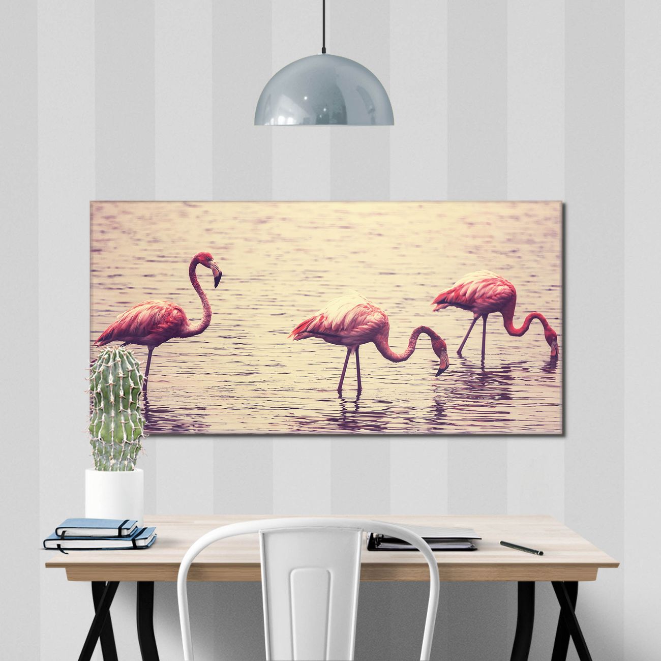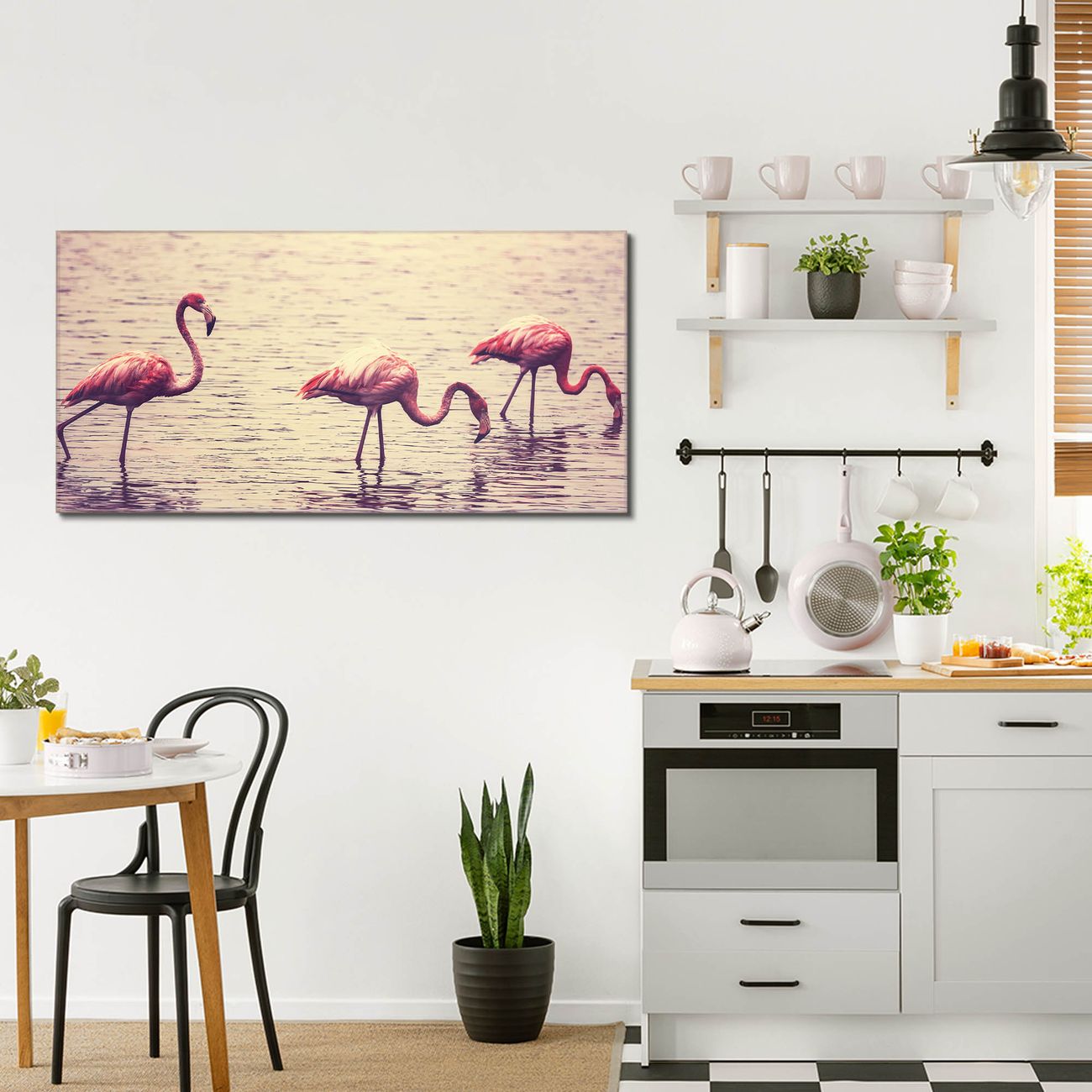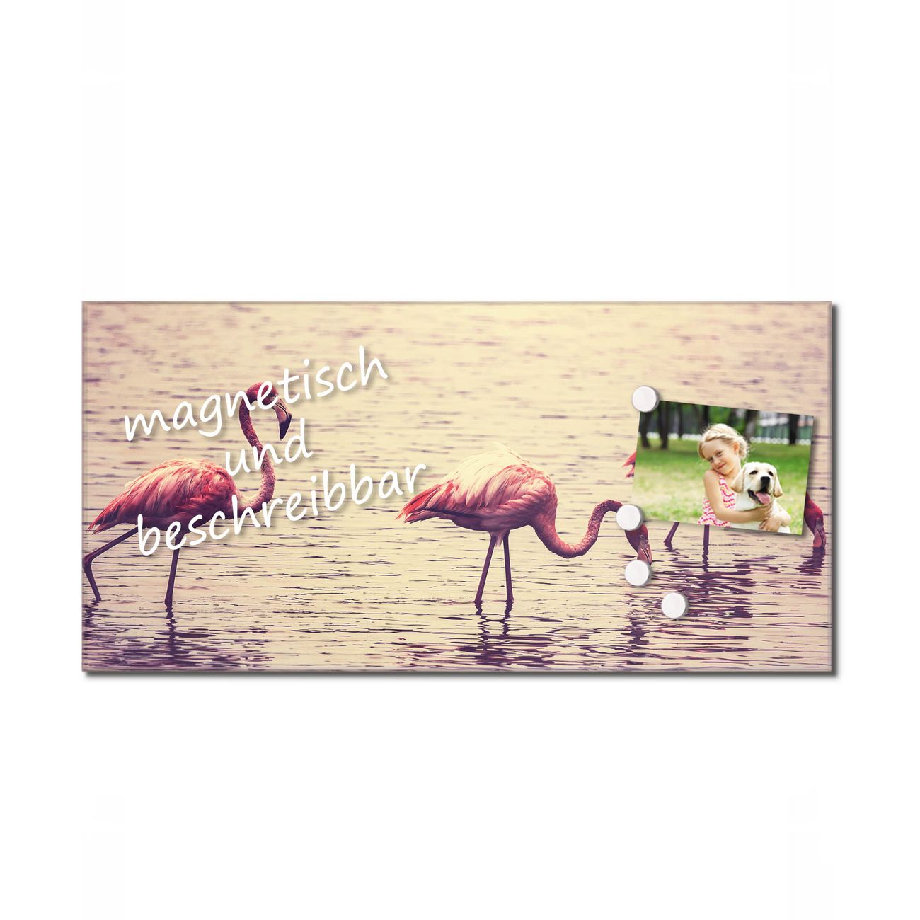 Glas Magnettafel im Querformat Motiv Drei Flamnigos