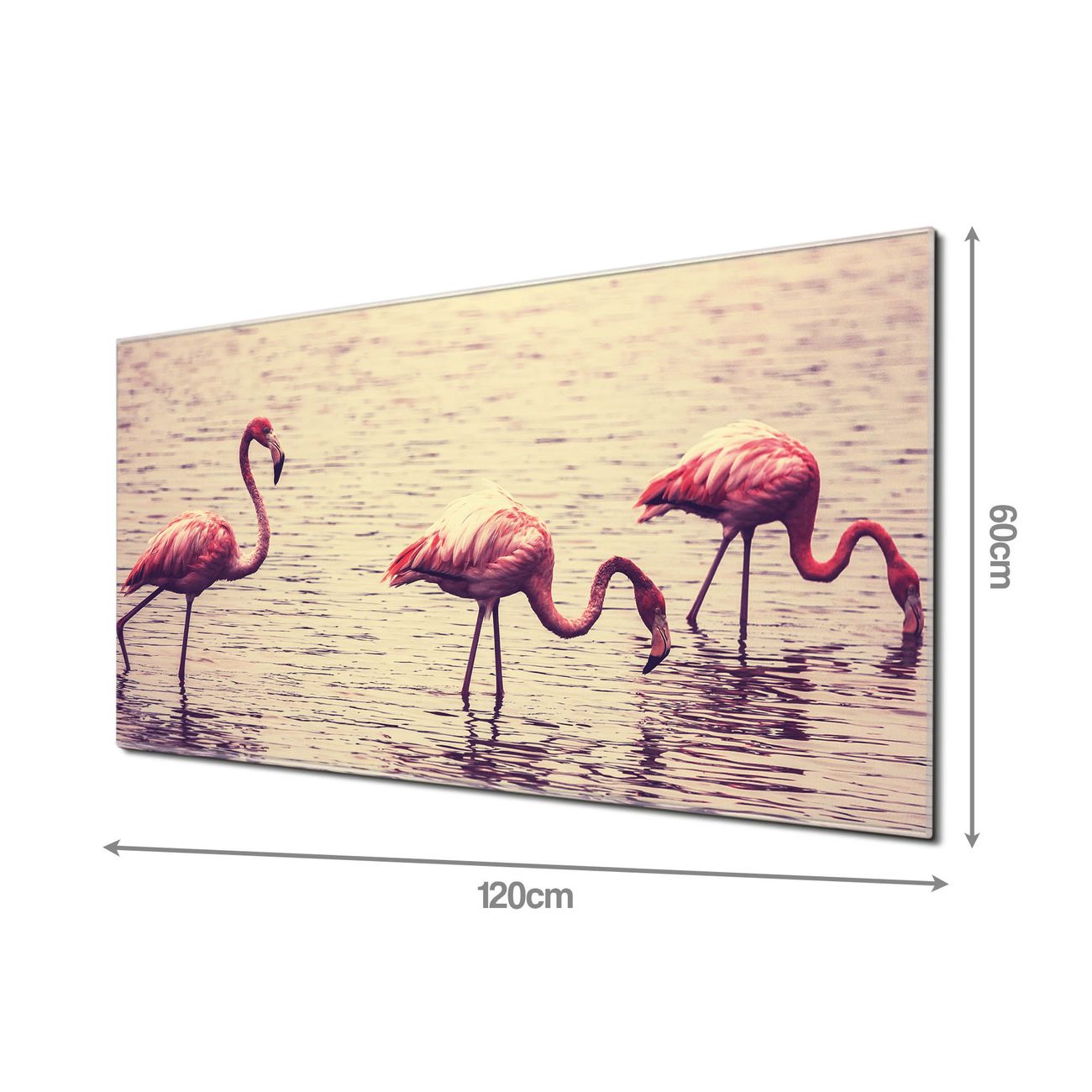 Material: 4mm Sicherheitsglas mit Metallrückwand Eigenschaften: beschreibbar, magnetisch, kratzfest Maße: 120x60x0,6cm, 10,80kg schwer Motiv Nummer 11734 Drei Flamnigos Zubehör: inklusive 4 Neodym-Magnete