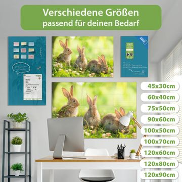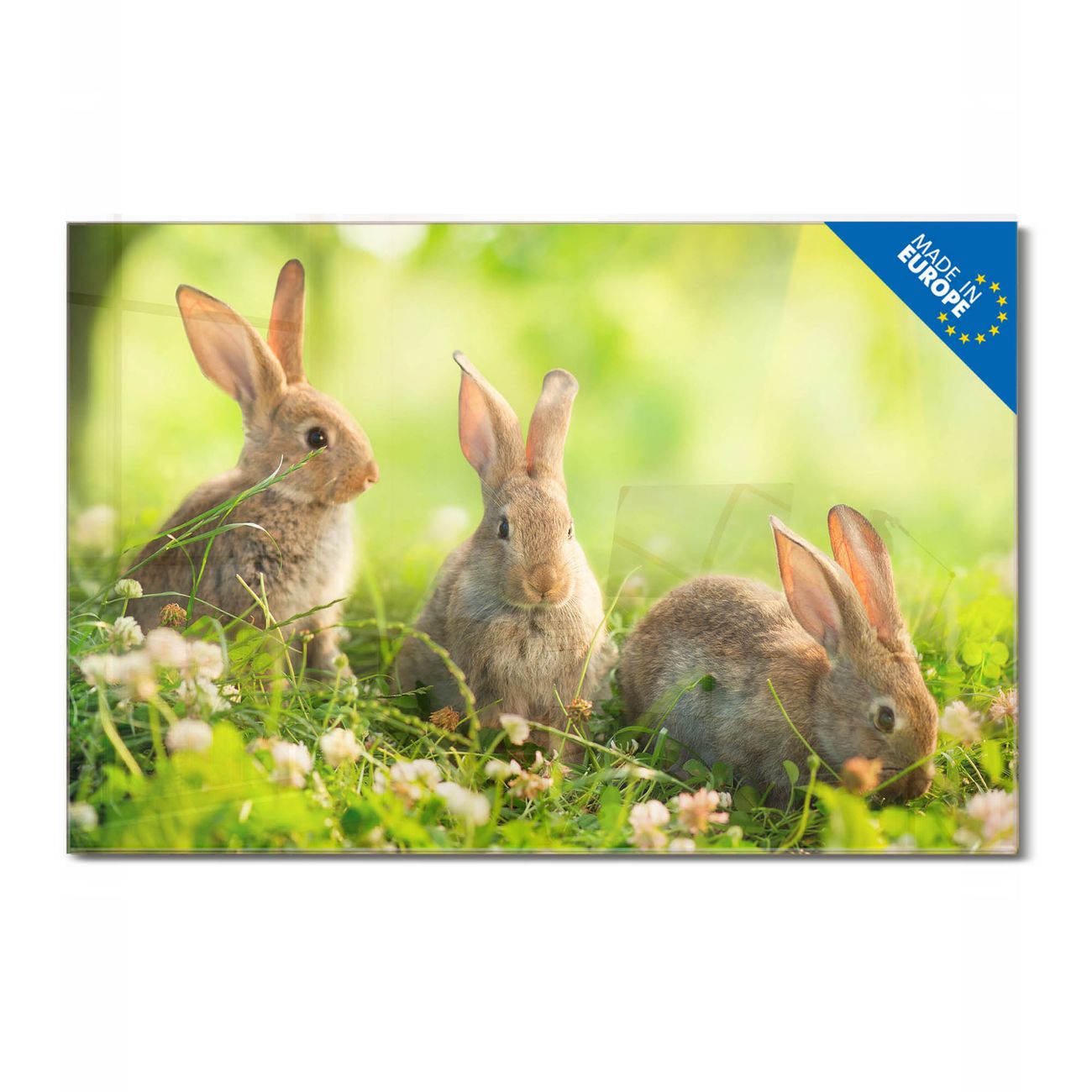Glas Magnettafel im Querformat Motiv Drei Hasen