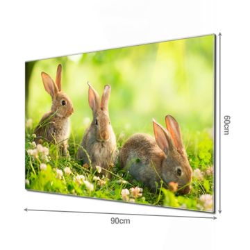 Material  4mm Sicherheitsglas mit Metallrückwand Eigenschaften  beschreibbar, magnetisch, kratzfest Maße  90x60x0,6cm, 8,10kg schwer Motiv  Nummer 11125 Drei Hasen Zubehör  inklusive 4 Neodym-Magnete