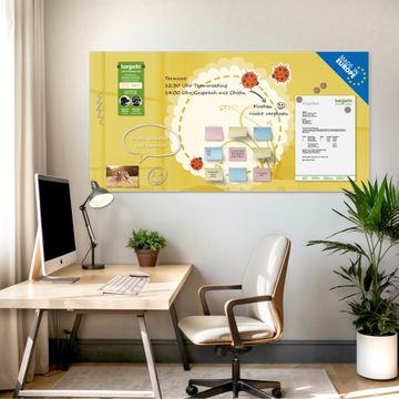 Auf der glatten Glasoberfläche lassen sich Termine, Rezepte oder Notizen ganz einfach mit Kreidestiften festhalten und rückstandslos entfernen. Starke Neodym-Magnete halten Ihre wichtigsten Erinnerungen sicher an Ort und Stelle. So entsteht Ihre ganz persönliche Ideenwand - jeden Tag neu.