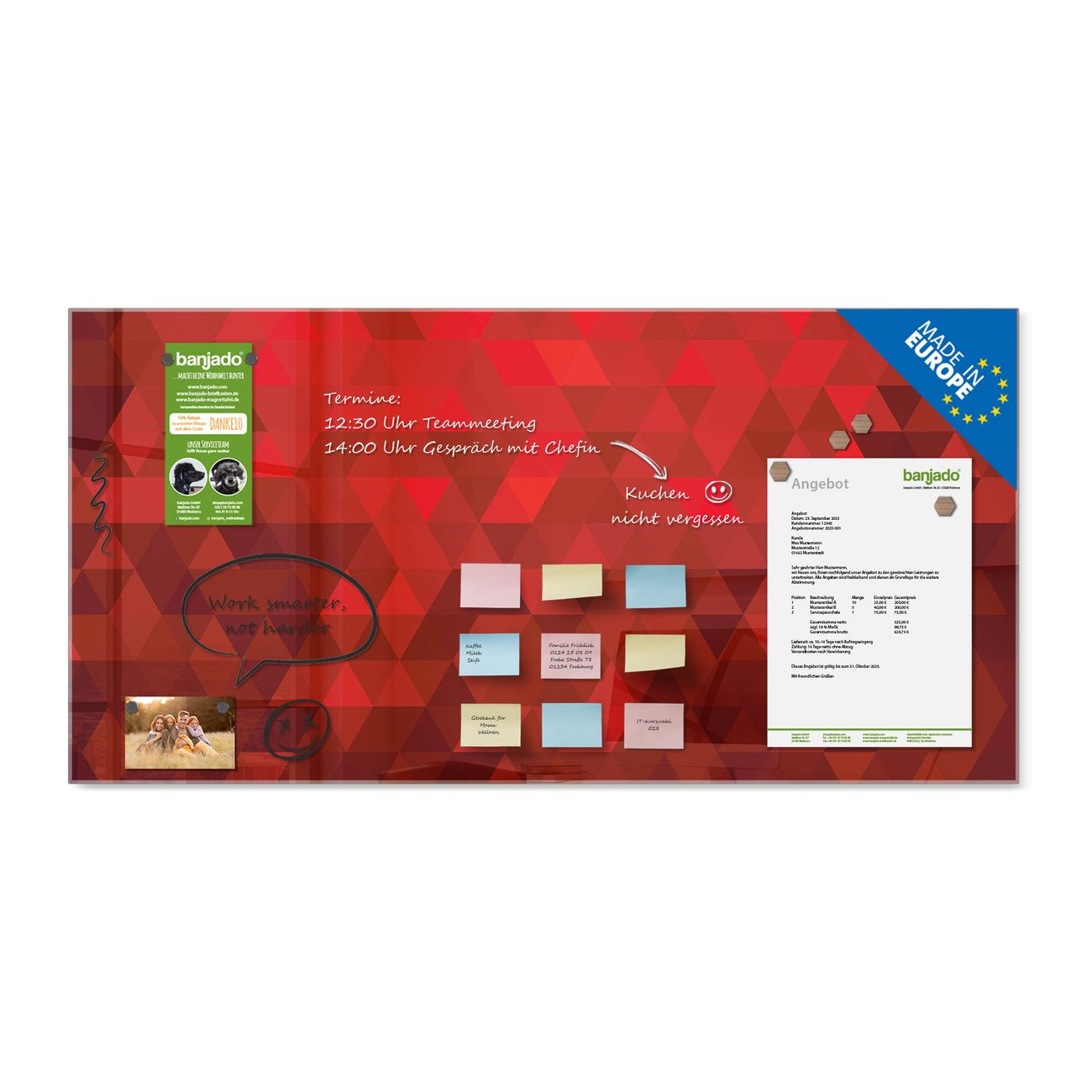 Glas Magnettafel im Querformat Motiv Dreiecke Rot
