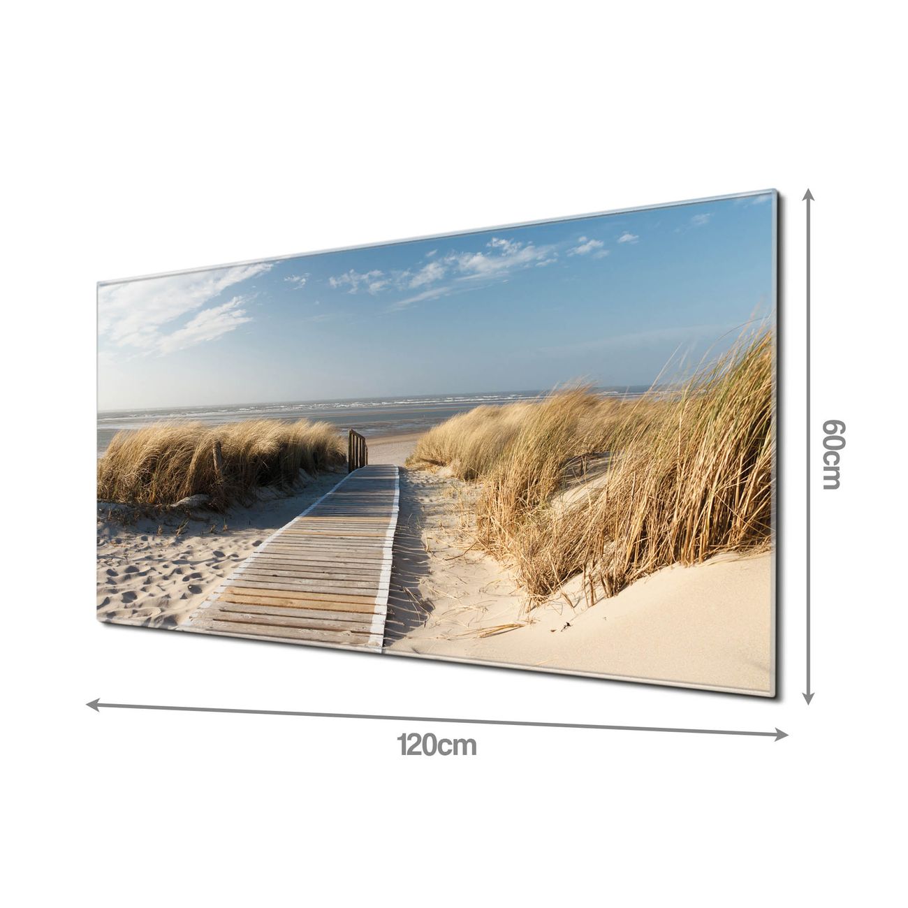 Material: 4mm Sicherheitsglas mit Metallrückwand Eigenschaften: beschreibbar, magnetisch, kratzfest Maße: 120x60x0,6cm, 10,80kg schwer Motiv Nummer 10183 Dünen Zubehör: inklusive 4 Neodym-Magnete