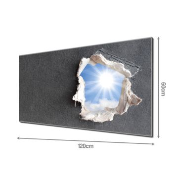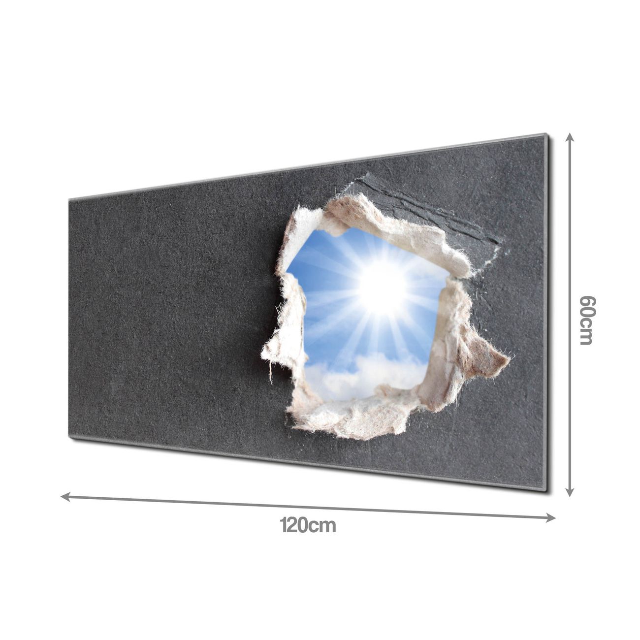 Material: 4mm Sicherheitsglas mit Metallrückwand Eigenschaften: beschreibbar, magnetisch, kratzfest Maße: 120x60x0,6cm, 10,80kg schwer Motiv Nummer 10197 Durchblick Zubehör: inklusive 4 Neodym-Magnete