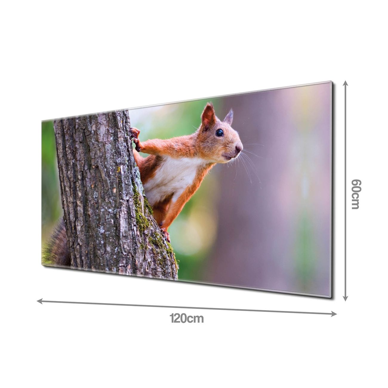 Material: 4mm Sicherheitsglas mit Metallrückwand Eigenschaften: beschreibbar, magnetisch, kratzfest Maße: 120x60x0,6cm, 10,80kg schwer Motiv Nummer 10326 Eichhörnchen Zubehör: inklusive 4 Neodym-Magnete