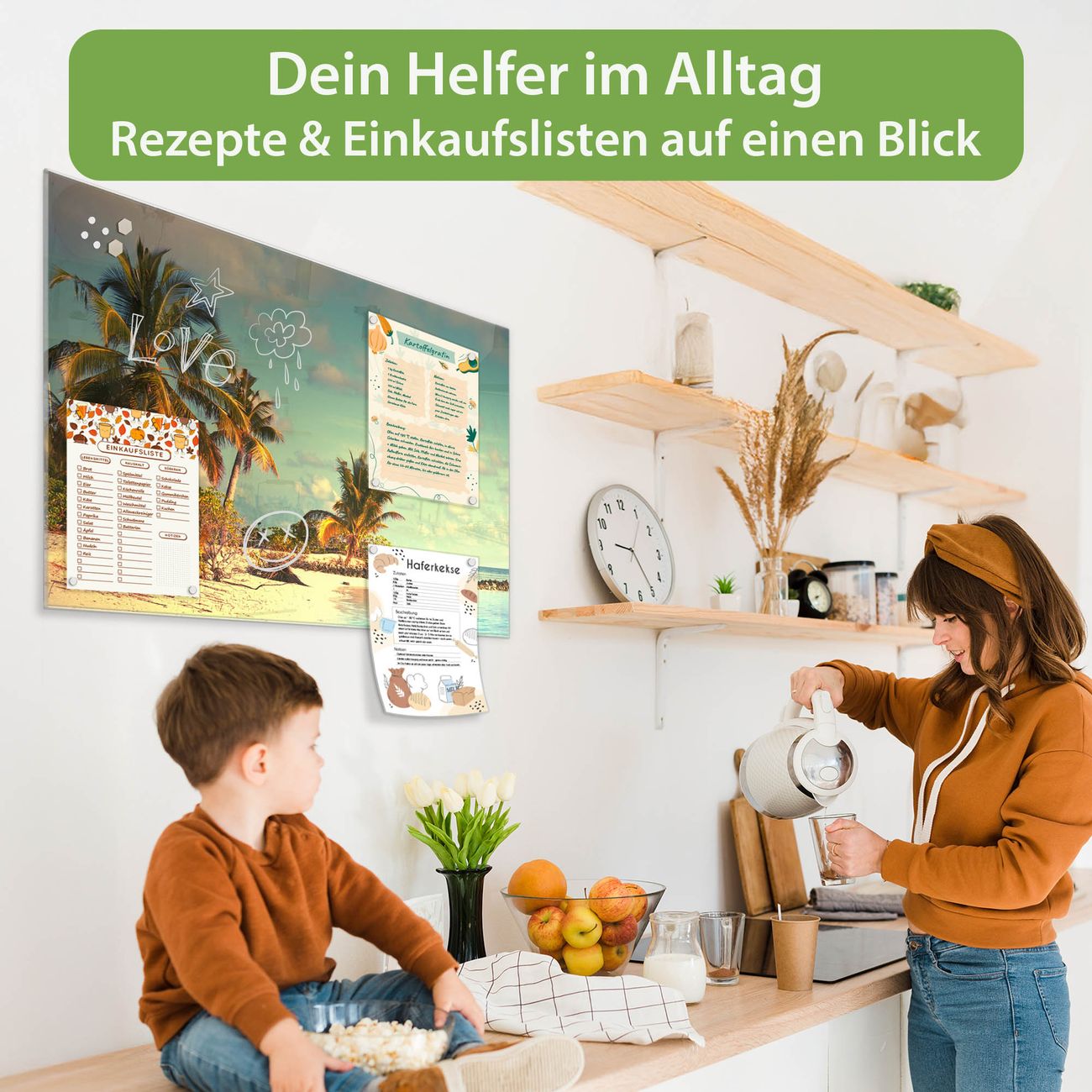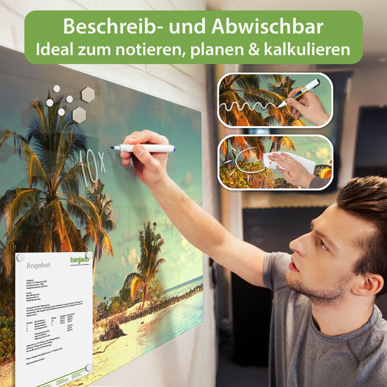 Die banjado Glas Magnettafel mit dem Motiv Motiv Einsame Insel verbindet Funktionalität mit Stil. Sie ersetzt das Zettelchaos durch klare Strukturen und bringt dabei eine warme, natürliche Atmosphäre in Ihr Zuhause. Ob im Büro, in der Küche oder im Eingangsbereich - dieses Design-Board zieht Blicke an und sorgt für Ordnung mit Charakter.