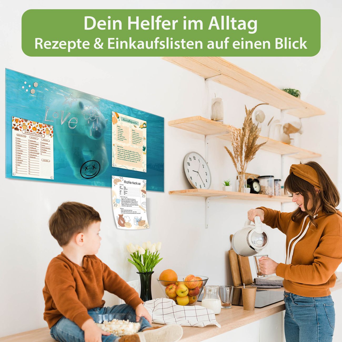 Ein Stück Design, das Ihren Alltag organisiert. Schreiben, heften, inspirieren - alles an einem Ort. Qualität, die man spürt. Montage leicht gemacht. Handwerk mit Herz - veredelt in Sachsen. Einzigartiges Design mit Motiv Motiv Eisbär unter Wasser Beschreibbare Glasoberfläche, leicht zu reinigen Starke Magnetkraft durch Stahlrückwand Inklusive 4 Neodym-Magneten Flexible Montageoptionen Handveredelt in Sachsen - Qualität, die bleibt