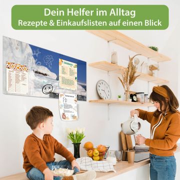 Auf der glatten Glasoberfläche lassen sich Termine, Rezepte oder Notizen ganz einfach mit Kreidestiften festhalten und rückstandslos entfernen. Starke Neodym-Magnete halten Ihre wichtigsten Erinnerungen sicher an Ort und Stelle. So entsteht Ihre ganz persönliche Ideenwand - jeden Tag neu.