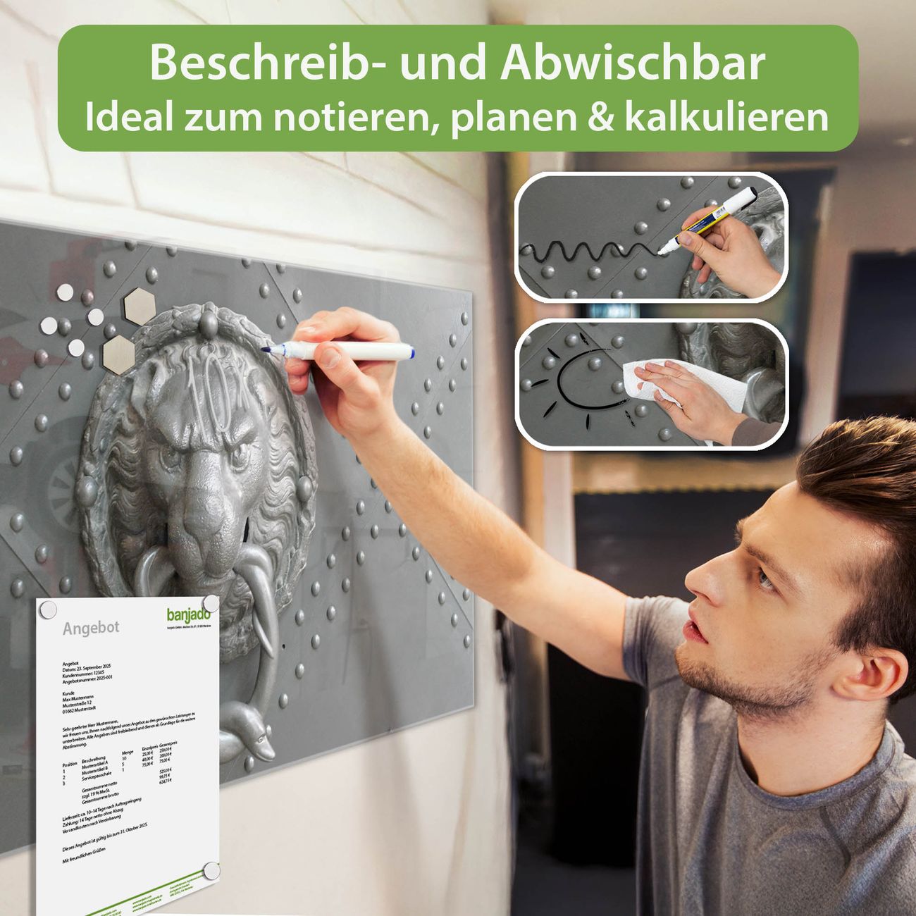Jede Glas Magnettafel wird in unserer Werkstatt von Hand gefertigt und sorgfältig geprüft. So erhalten Sie ein echtes Qualitätsprodukt, das Funktion und Ästhetik perfekt vereint.?? Warum banjado?