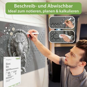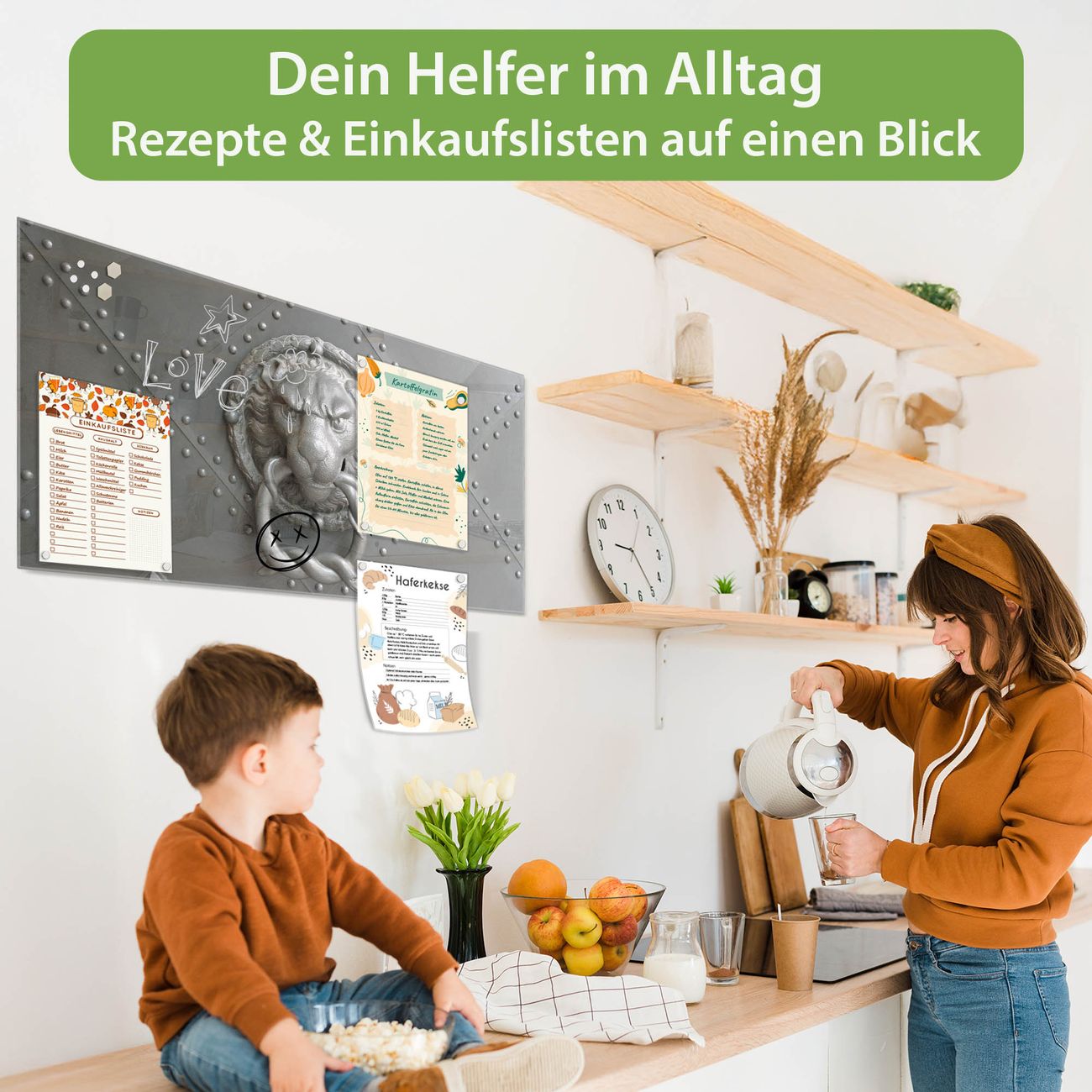 Auf der glatten Glasoberfläche lassen sich Termine, Rezepte oder Notizen ganz einfach mit Kreidestiften festhalten und rückstandslos entfernen. Starke Neodym-Magnete halten Ihre wichtigsten Erinnerungen sicher an Ort und Stelle. So entsteht Ihre ganz persönliche Ideenwand - jeden Tag neu.