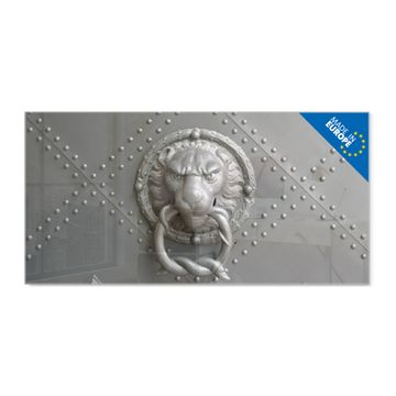 Material: 4mm Sicherheitsglas mit Metallrückwand Eigenschaften: beschreibbar, magnetisch, kratzfest Maße: 100x50x0,6cm, 7,50kg schwer Motiv Nummer 10045 Eisentor Zubehör: inklusive 4 Neodym-Magnete