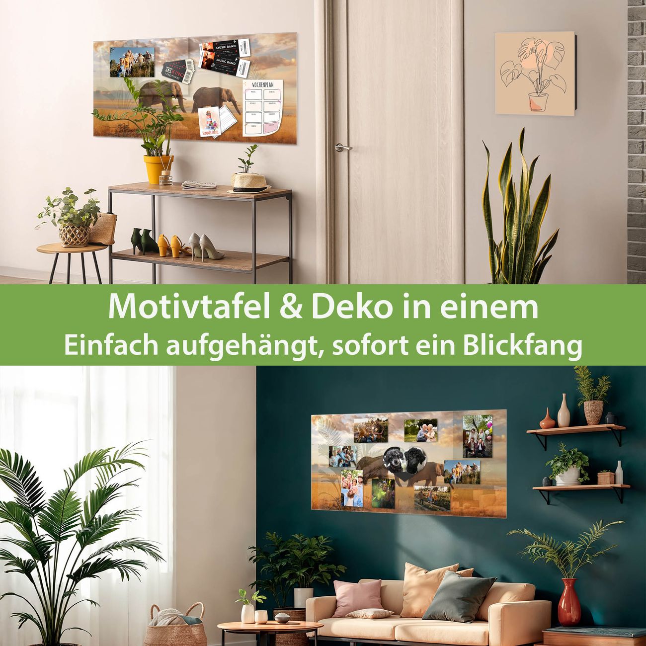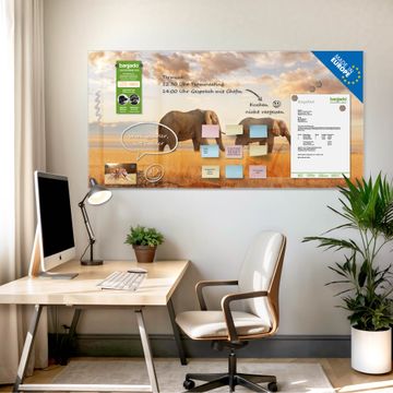 Die banjado Glas Magnettafel mit dem Motiv Motiv Elefanten verbindet Funktionalität mit Stil. Sie ersetzt das Zettelchaos durch klare Strukturen und bringt dabei eine warme, natürliche Atmosphäre in Ihr Zuhause. Ob im Büro, in der Küche oder im Eingangsbereich - dieses Design-Board zieht Blicke an und sorgt für Ordnung mit Charakter.