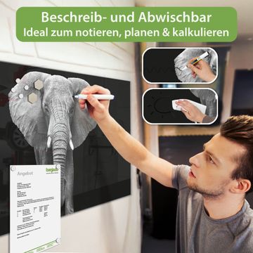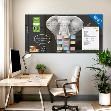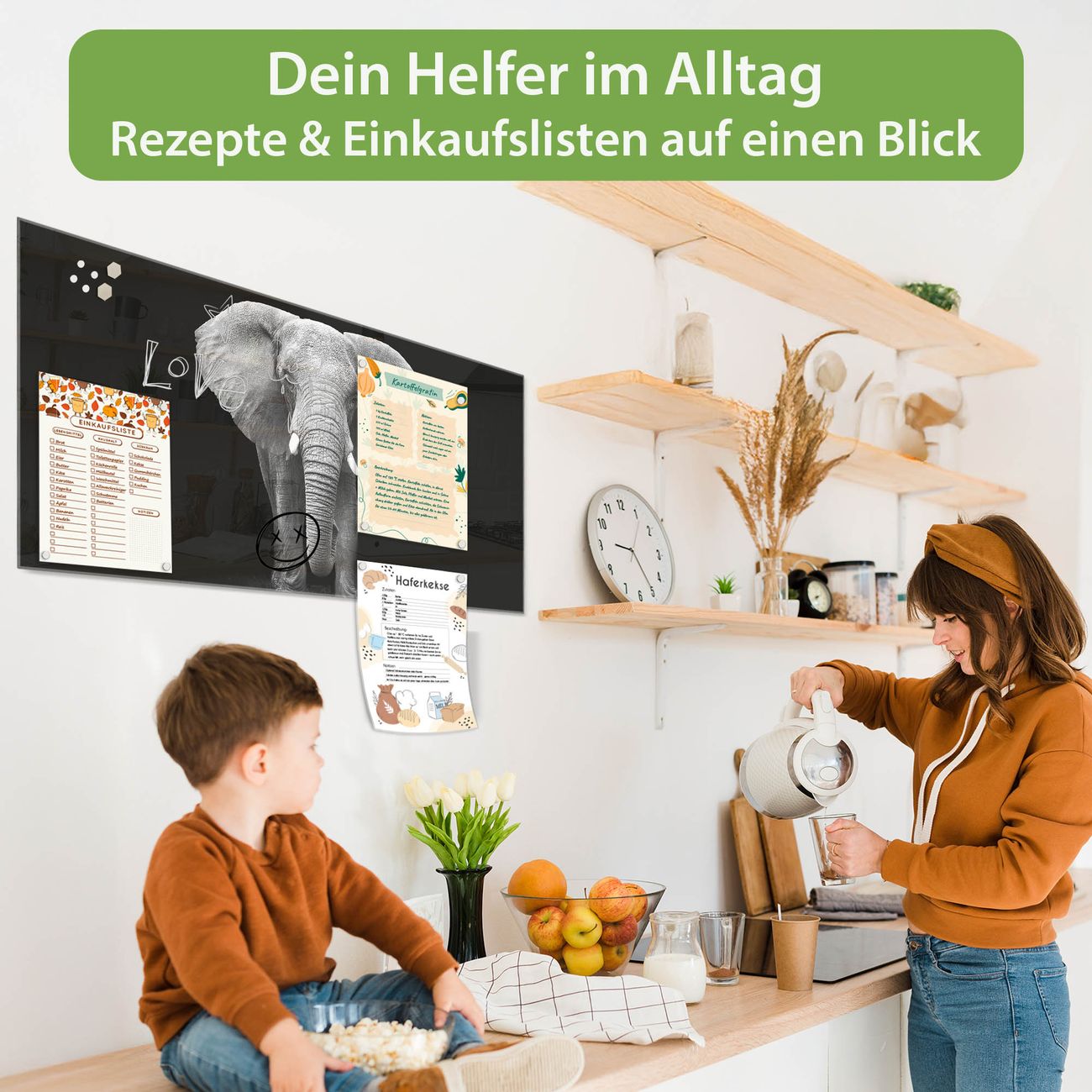 Auf der glatten Glasoberfläche lassen sich Termine, Rezepte oder Notizen ganz einfach mit Kreidestiften festhalten und rückstandslos entfernen. Starke Neodym-Magnete halten Ihre wichtigsten Erinnerungen sicher an Ort und Stelle. So entsteht Ihre ganz persönliche Ideenwand - jeden Tag neu.