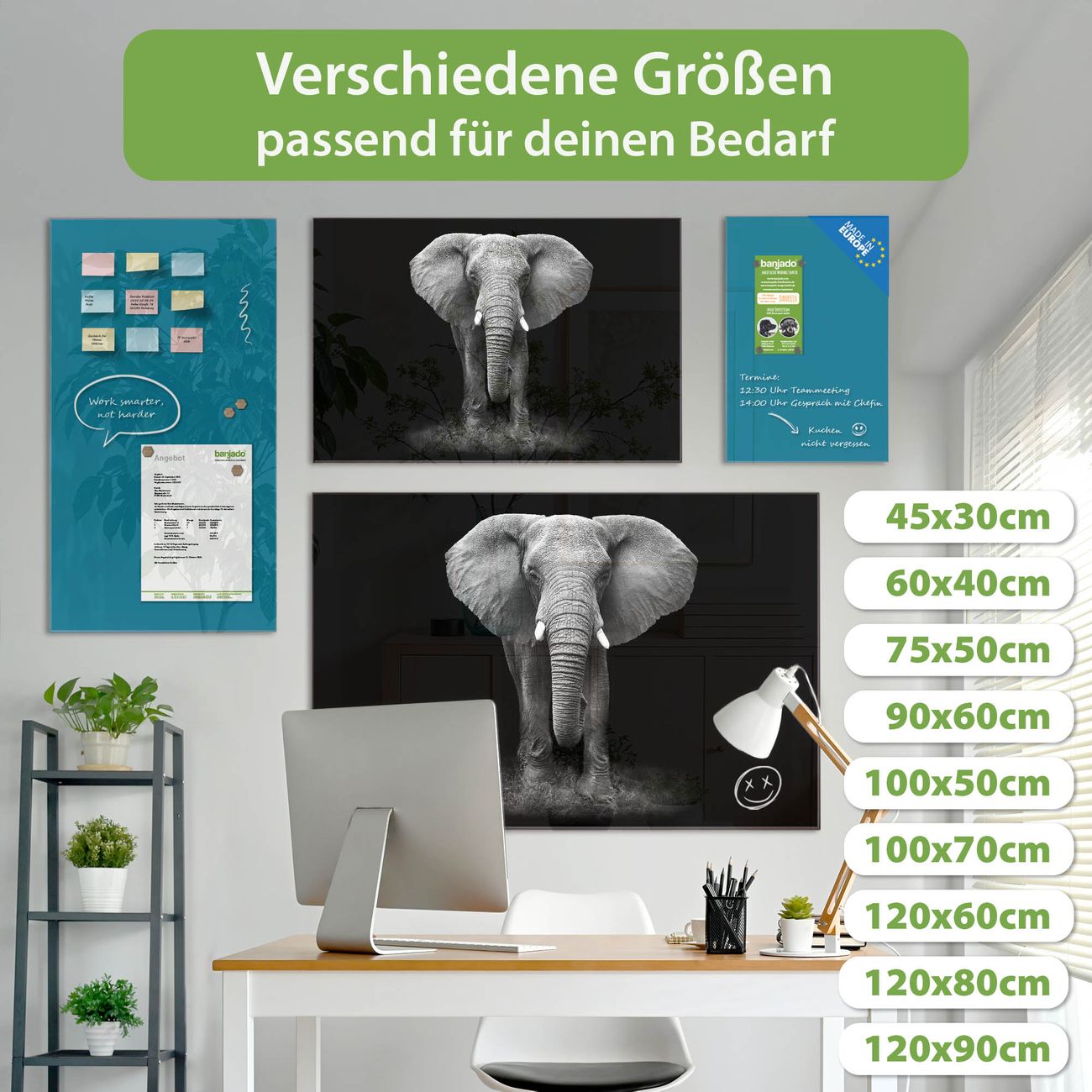 Material: 4mm Sicherheitsglas mit Metallrückwand Eigenschaften: beschreibbar, magnetisch, kratzfest Maße: 120x80x0,6cm, 14,40kg schwer Motiv Nummer 12312 Ella Zubehör: inklusive 4 Neodym-Magnete