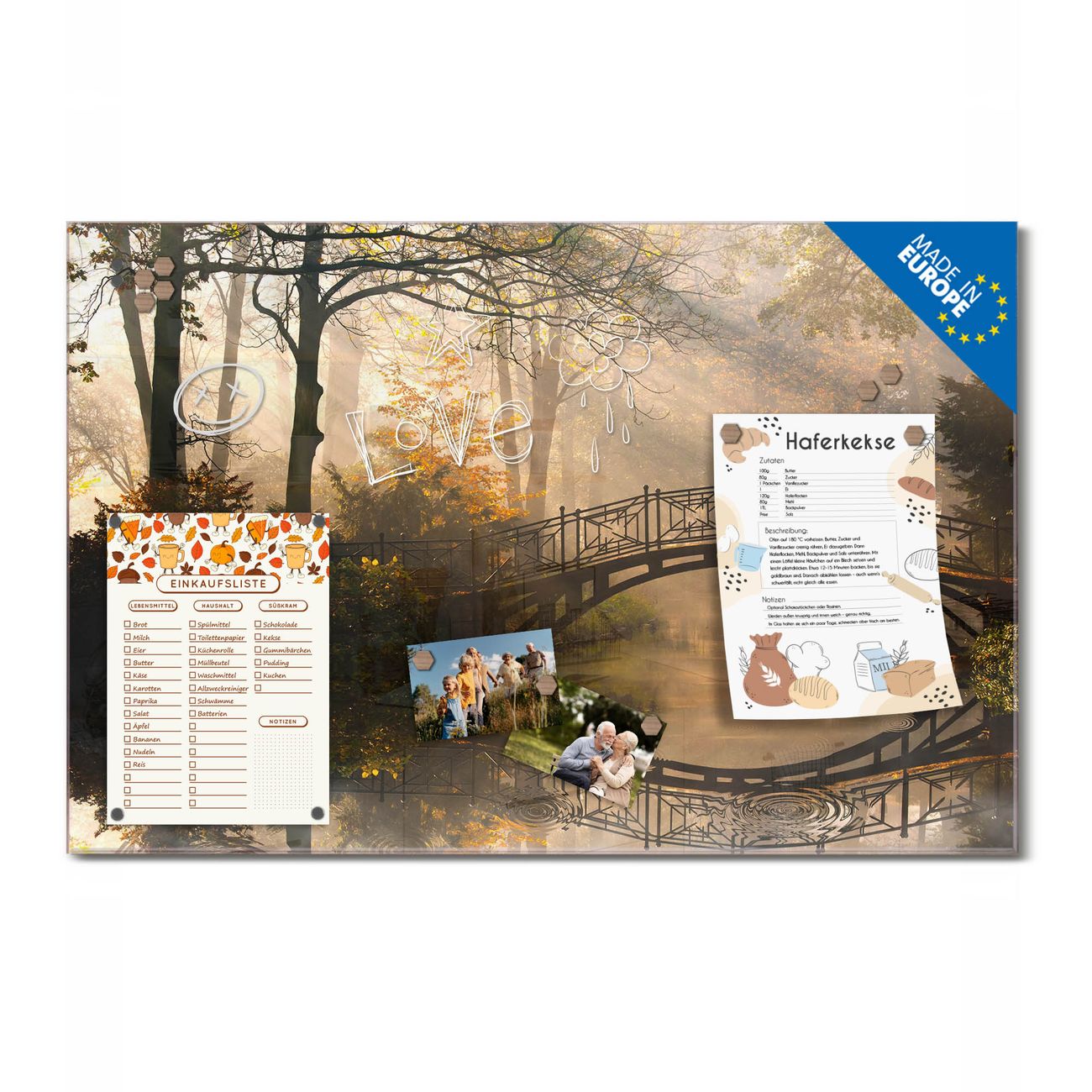 Ein Stück Design, das Ihren Alltag organisiert. Schreiben, heften, inspirieren - alles an einem Ort. Qualität, die man spürt. Montage leicht gemacht. Handwerk mit Herz - veredelt in Sachsen. Einzigartiges Design mit Motiv Motiv Englischer Garten Beschreibbare Glasoberfläche, leicht zu reinigen Starke Magnetkraft durch Stahlrückwand Inklusive 4 Neodym-Magneten Flexible Montageoptionen Handveredelt in Sachsen - Qualität, die bleibt