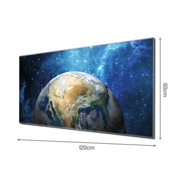 Material: 4mm Sicherheitsglas mit Metallrückwand Eigenschaften: beschreibbar, magnetisch, kratzfest Maße: 120x60x0,6cm, 10,80kg schwer Motiv Nummer 10643 Erdkugel Zubehör: inklusive 4 Neodym-Magnete