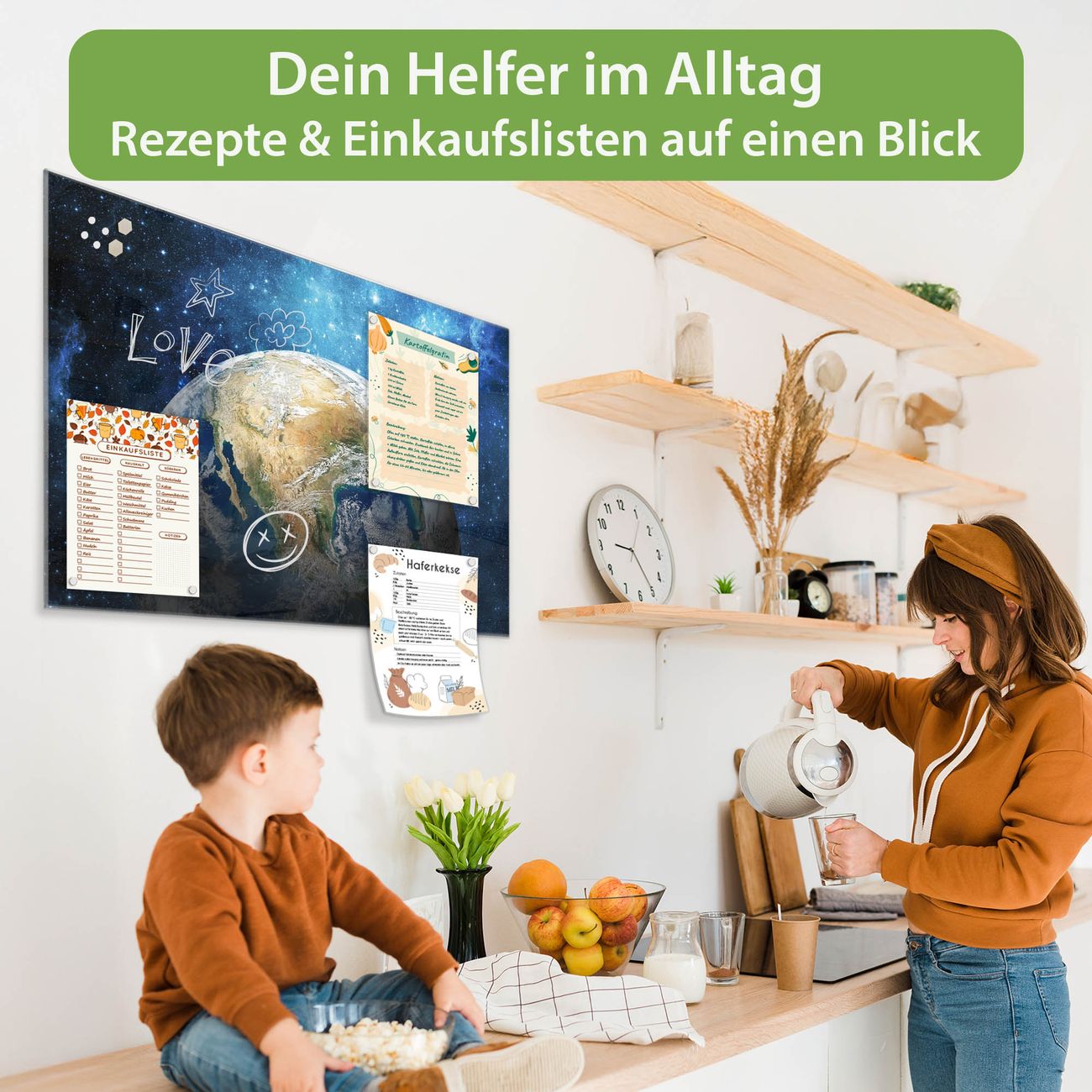 Ein Stück Design, das Ihren Alltag organisiert. Schreiben, heften, inspirieren - alles an einem Ort. Qualität, die man spürt. Montage leicht gemacht. Handwerk mit Herz - veredelt in Sachsen. Einzigartiges Design mit Motiv Motiv Erdkugel Beschreibbare Glasoberfläche, leicht zu reinigen Starke Magnetkraft durch Stahlrückwand Inklusive 4 Neodym-Magneten Flexible Montageoptionen Handveredelt in Sachsen - Qualität, die bleibt