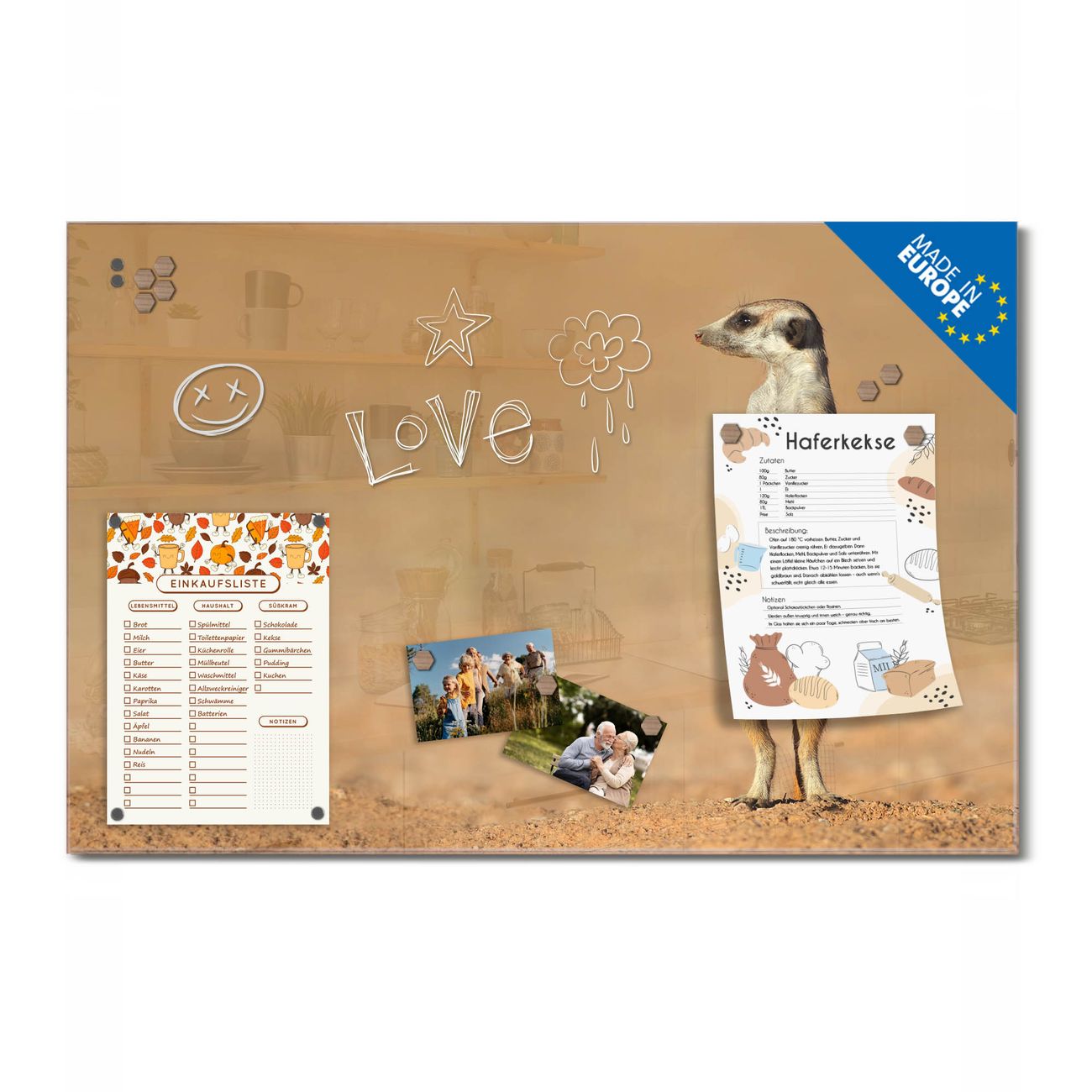 Auf der glatten Glasoberfläche lassen sich Termine, Rezepte oder Notizen ganz einfach mit Kreidestiften festhalten und rückstandslos entfernen. Starke Neodym-Magnete halten Ihre wichtigsten Erinnerungen sicher an Ort und Stelle. So entsteht Ihre ganz persönliche Ideenwand - jeden Tag neu.