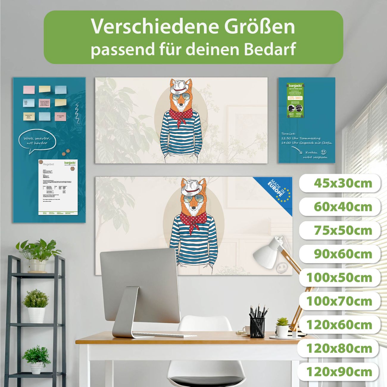 Jede Glas Magnettafel wird in unserer Werkstatt von Hand gefertigt und sorgfältig geprüft. So erhalten Sie ein echtes Qualitätsprodukt, das Funktion und Ästhetik perfekt vereint.?? Warum banjado?
