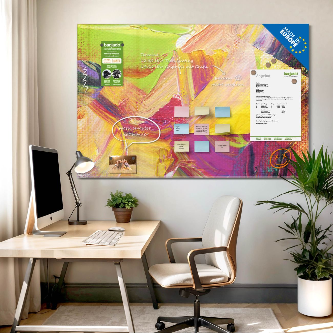 Die banjado Glas Magnettafel mit dem Motiv Motiv Farbe auf Leinwand verbindet Funktionalität mit Stil. Sie ersetzt das Zettelchaos durch klare Strukturen und bringt dabei eine warme, natürliche Atmosphäre in Ihr Zuhause. Ob im Büro, in der Küche oder im Eingangsbereich - dieses Design-Board zieht Blicke an und sorgt für Ordnung mit Charakter.