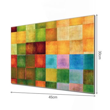 Material: 4mm Sicherheitsglas mit Metallrückwand Eigenschaften: beschreibbar, magnetisch, kratzfest Maße: 45x30x0,6cm, 2,03kg schwer Motiv Nummer 11563 Farbkasten 2 Zubehör: inklusive 4 Neodym-Magnete