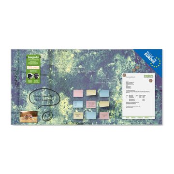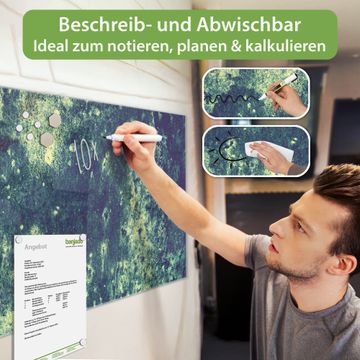 Material: 4mm Sicherheitsglas mit Metallrückwand Eigenschaften: beschreibbar, magnetisch, kratzfest Maße: 100x50x0,6cm, 7,50kg schwer Motiv Nummer 11580 Farbuniversum Zubehör: inklusive 4 Neodym-Magnete